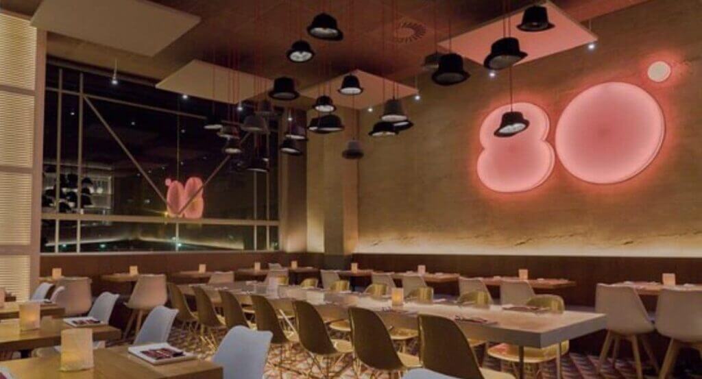 Ochenta grados es un restaurante moderno que tiene cinco locales repartidos por Madrid y que su comida se caracteriza además de ser pequeños platos tanto calientes como fríos están hechos todos ellos a baja temperatura, lo que hace que el sabor de cada uno de los alimentos que utilizan se conserve mejor.